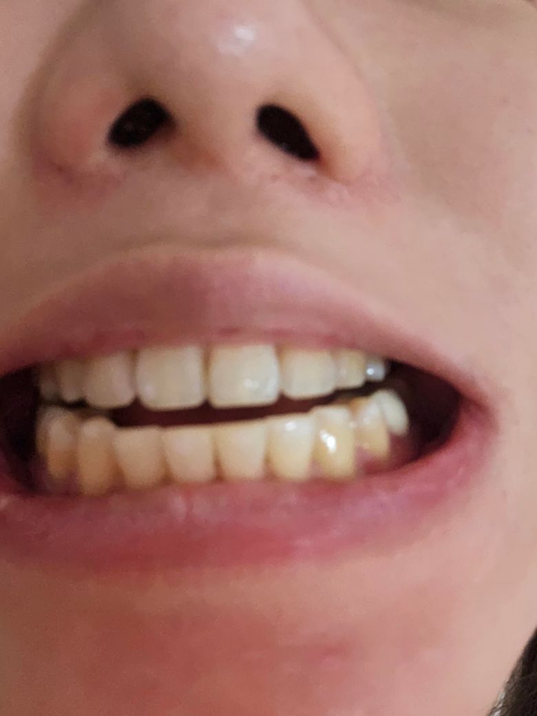 사진상 오른쪽 크라운을 했는데 처음에 낮아서 다시 보철물을 제작하고 본떠서 지금 임시치아를 했는데 높이는 높아진거같은데 뒤로 안물리고 약간 이상한거같아요. 어금니 하나를 놓고 봤을때 반으로 나눠보면 치아가 뒤쪽은 낮은데 앞쪽은 높아서 뒤로는안물리는 느낌입니다. 이럴수도 있나요? 그리고 치아사진을 찍었는데 양쪽높이가 많이 다릅니다. 원래 이런가요?