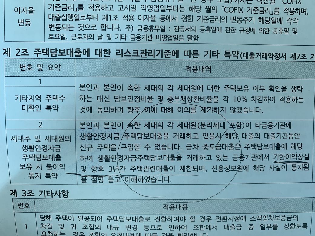 또 아래 문구가 은행의 이익상실에 따라 제가 앞으로 3년동안 모든 주담대 대출(후순위 등등) 못 받는다는 건가요?
