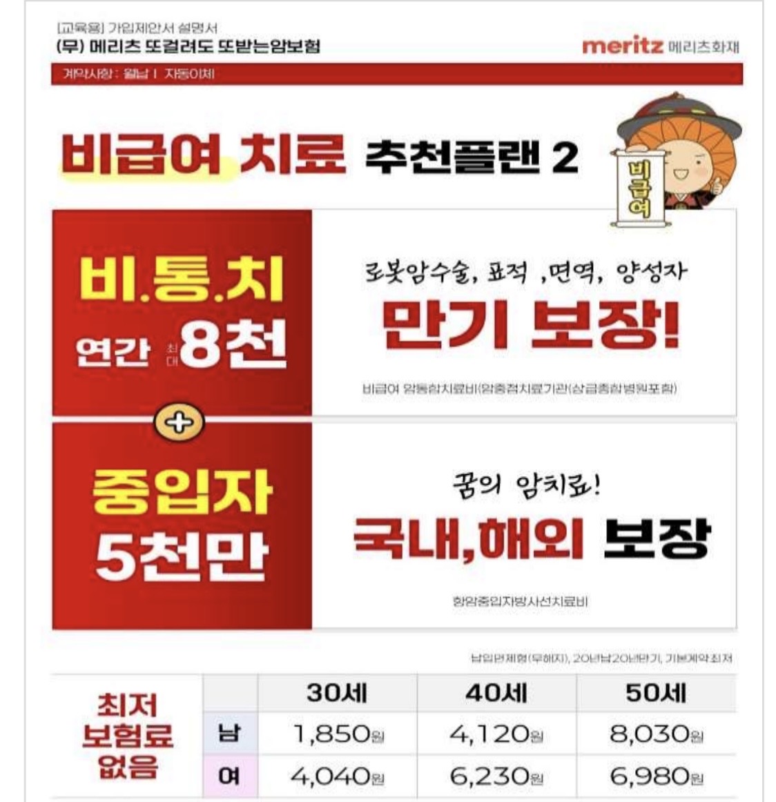 암수술 치료비 따로 메리츠화재 또또암 최소보험료 없어서 예시에 담보만 넣을 수 있습니다.