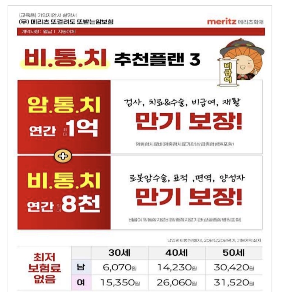 질문1 : 1번 2번 보험 비교하면 1번 보험이 더 싸고 좋은것이죠?