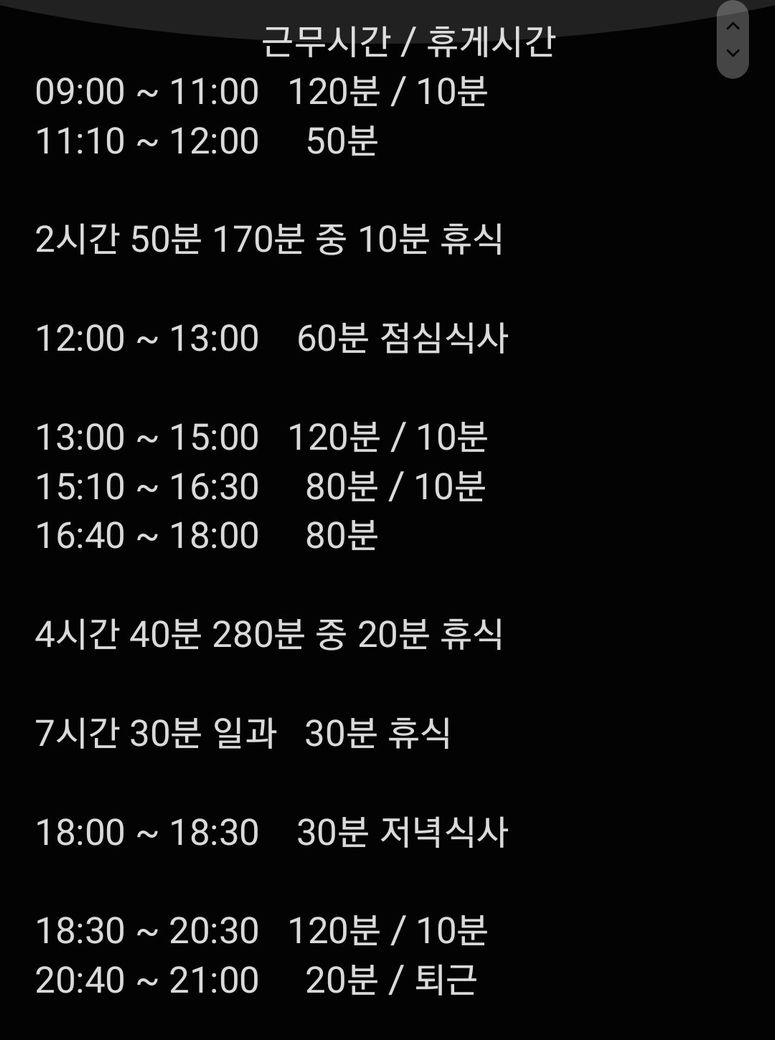 첨부된 근무시간은 잘 지켜지는 건가요??