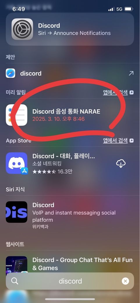 설정에 들어가셔서 Siri및 검색이라는 메뉴 찾으시면 되는데 거기서 디스코드 앱 한번 찾아보시고