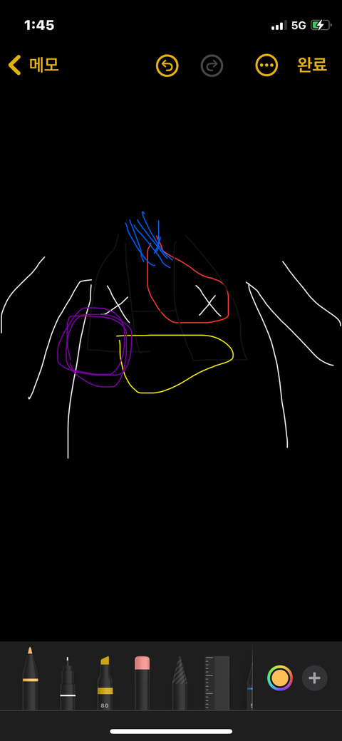 보라색 동그라미 쪽의 통증은 늑막염, 늑간 신경통, 또는 근육통 등의 원인일 가능성이 있습니다. 늑막염은 폐를 둘러싸고 있는 늑막에 염증이 생긴 경우로, 숨을 깊이 들이쉬거나 움직일 때 통증이 악화될 수 있습니다. 늑간 신경통은 갈비뼈 사이의 신경이 자극을 받아 발생하는 통증으로, 움직임이나 자세 변화에 따라 통증이 달라질 수 있습니다. 근육통은 특정 자세나 움직임에 따라 발생할 수 있으며, 스트레스나 과도한 운동 후에도 나타날 수 있습니다.