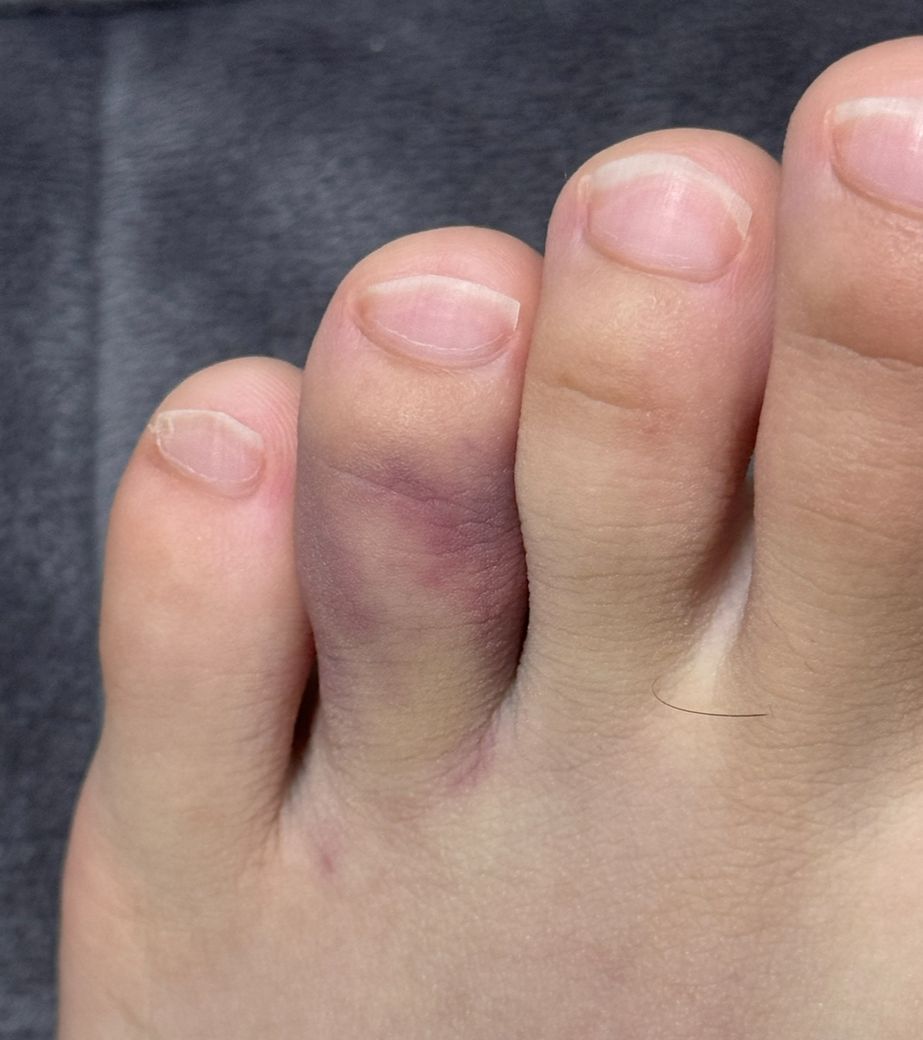 해당 발가락의 뼈를 눌러서 통증이 얼마나 발생하는지로 골절 여부를 가늠해볼 수는 있습니다.