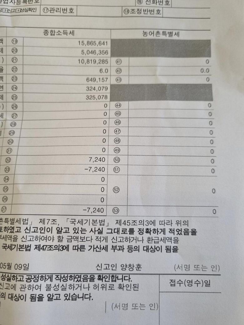 세무서에 떼준 2021년과 2022년 종합소득세 농어촌 특별세 과세표준확정신고를 한번 올려봅니다.