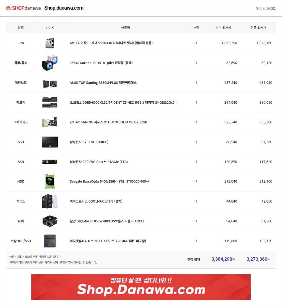 오늘 갑자기 10년된 컴퓨터가 맛이 가서 살ㅇㅏ날 기미가 앗보여. 급한대로 견적 짰습니다. 예산은 3백 3~5십만입니다.