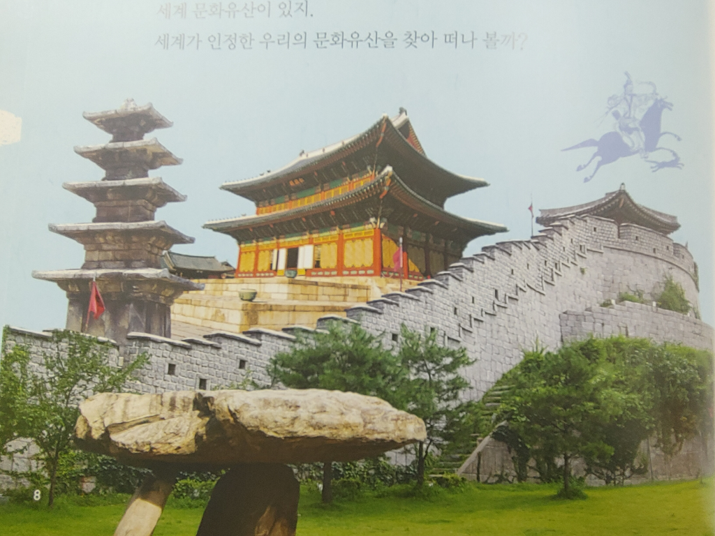 확실하지않지만 왼쪽부터 화엄사 오층석탑, 경복궁, 수원화성 같네요. 석탑은 비슷한 모양이 많아서 확실치 않아요
