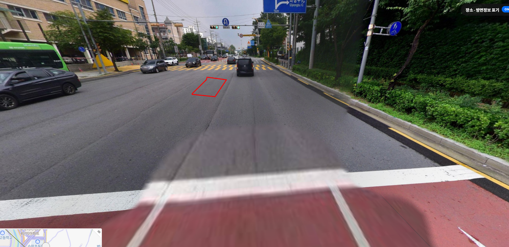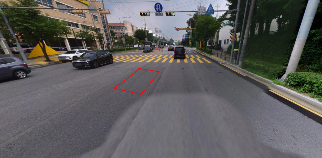 만약 그 지점이 빨간색 네모보다 앞이나 뒤에 있다면 신호위반에 걸리지 않습니다.