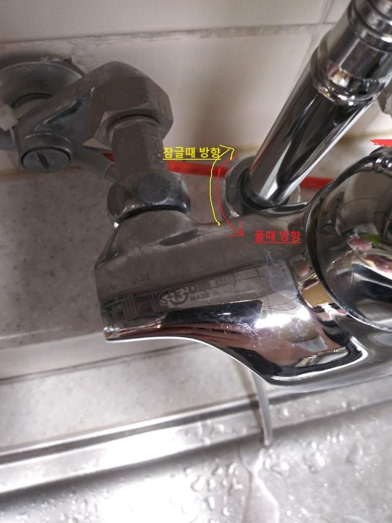 부엌 수전 교체후 물이 샙니다