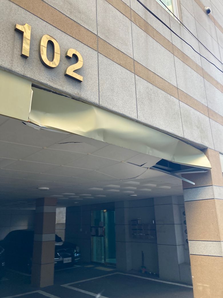 원룸 주차장 입구 필로티 파손 시 수리비용은 파손 부위, 재료, 크기 및 수리 난이도에 따라 다르지만 일반적으로 필로티 주차장 천장 파손 수리 비용은 육안 상으로 철제 프레임 교체가 필요해 보이며 인건비가 추가적으로 들어 1~2백 정도로 보입니다.