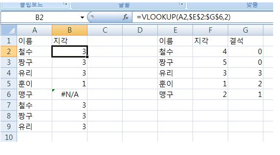 지각 결석 횟수 중에서 지각 내용만 뽑아내고 싶은데 이름이 달라도 같은 결과값이 나오거나 안나옵니다.