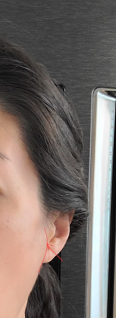 사진처럼 입을 열때 통증있는 부위 오른쪽 귓볼앞에 뼈가 돌출이되고 입을크게 벌릴수 없어요. 오른쪽 튀어나온부위 근처 누르면 통증도있고 고기를 씹을수 없어요.