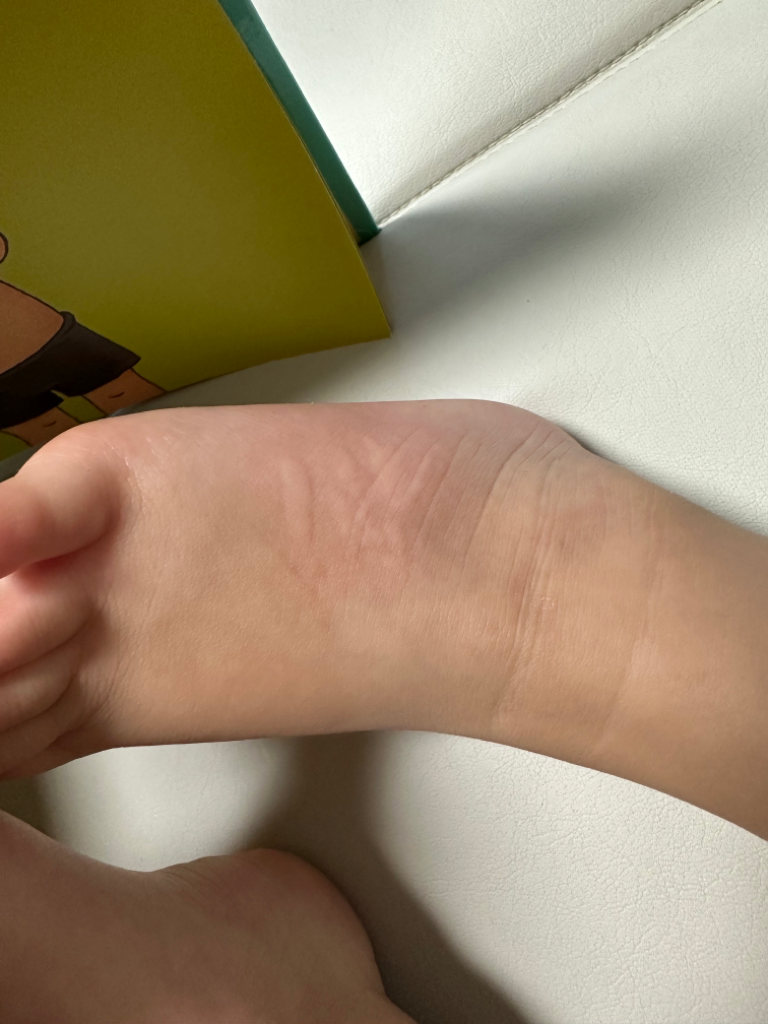 그러다 화요일부터는 배아프다는 것과 설사를 하는거 외에 다른증상은 없었는데 갑자기 사진처럼 빨갛게 올라왔다 가라앉고 올라왔다 가라앉고 반복하더라구요 근데 오늘은 발등부분이랑 목뒤가 간지럽다고 짜증을 냈는데 저게 가와사키일까요..? 다형홍반일까요..아님 알레르기면 알레르기 검사를 해봐야 될까요?