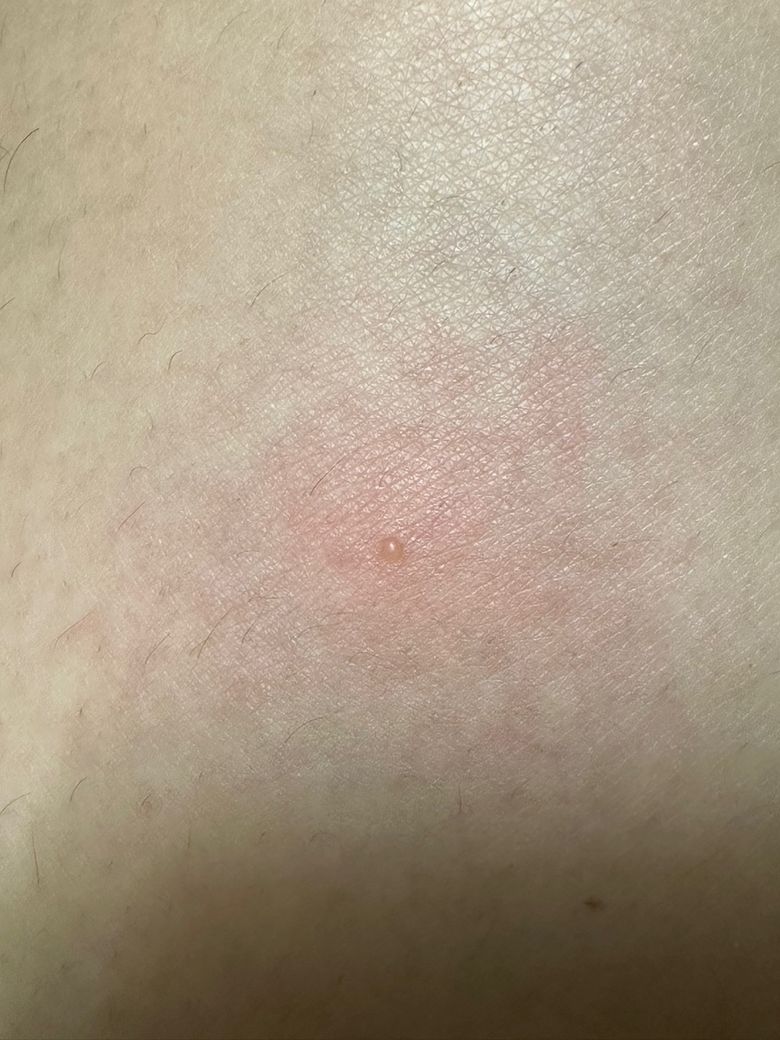 처음엔 모기물린것처럼 간지럽고 이후 피부가 붉어지고 작은 수포가 하나 생긴뒤론 안 간지럽습니다