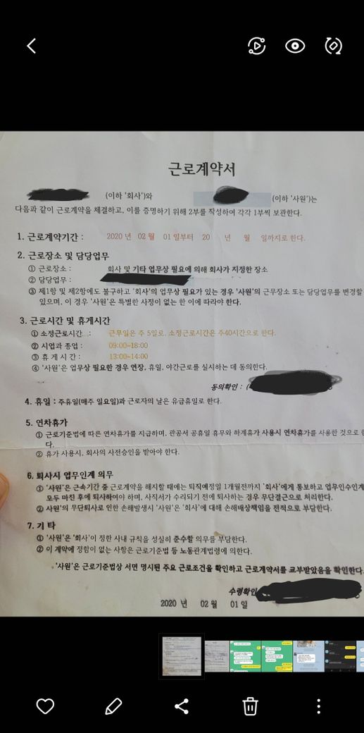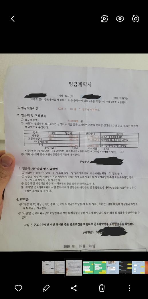 3. 2020년 계약서 인데 현재까지 같은 임금을 지급받고 계시다면 최저임금법 위반도 검토해 보셔야 합니다.