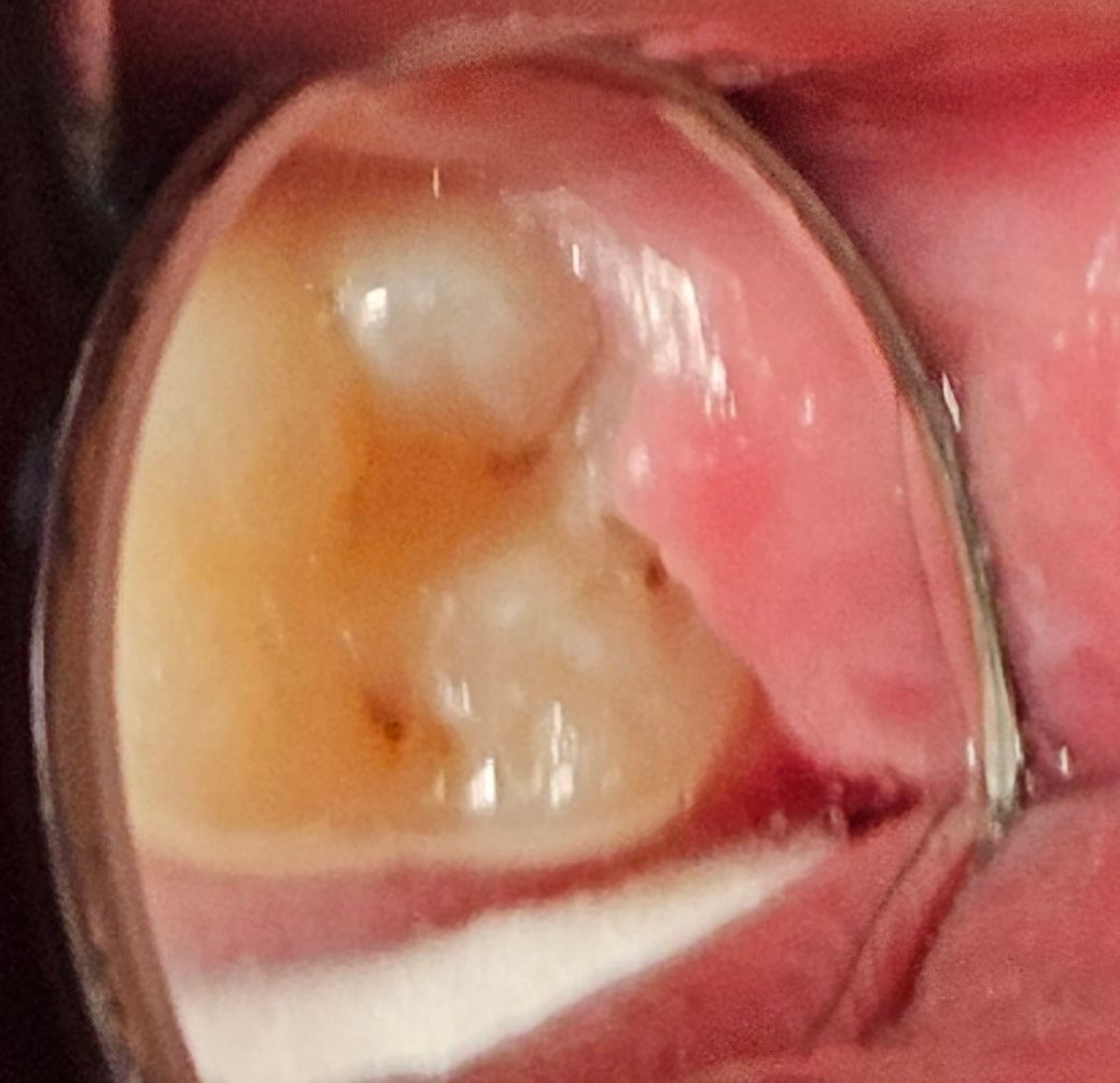 사진으로 보아서는 해당 부분의 충치는 있어 보입니다. 다만 모든 치과적 질환은 단기간에 진행되지 않으나 현재 상태에서 계속 방치하게 되면 더 큰 질환으로 이어질 수 있으므로 미리 치료하는 것이 좋을 수 있습니다.