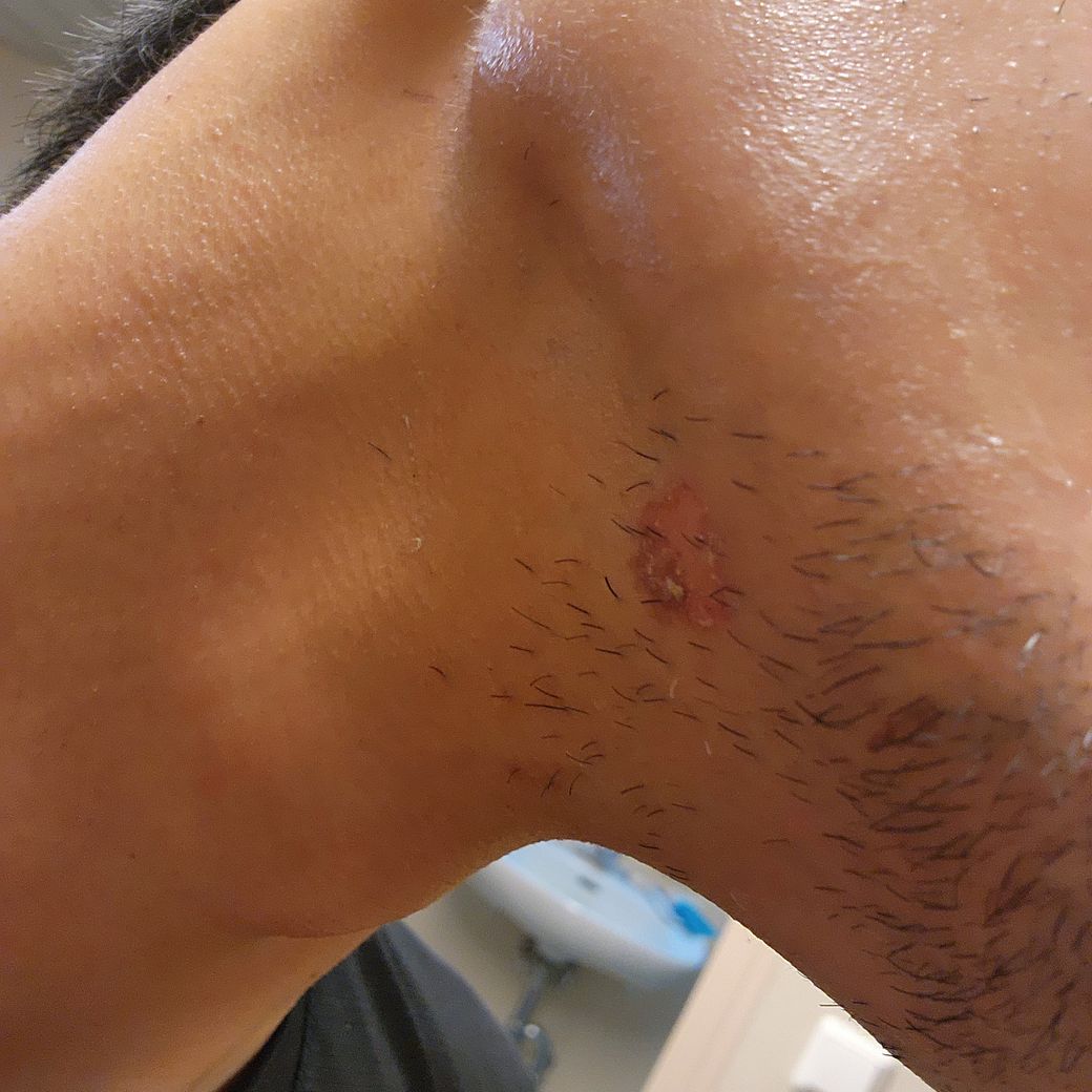 초기 처치를 잘하여 증상이 심해보이지 않으며 ,자가 치료를 지속하고, 해당부위 감염을 막기 위해 에스로반을 병행하여 사용을 하길 권장드리며, 물이 들어가지 않도록 관리를 권장드립니다.