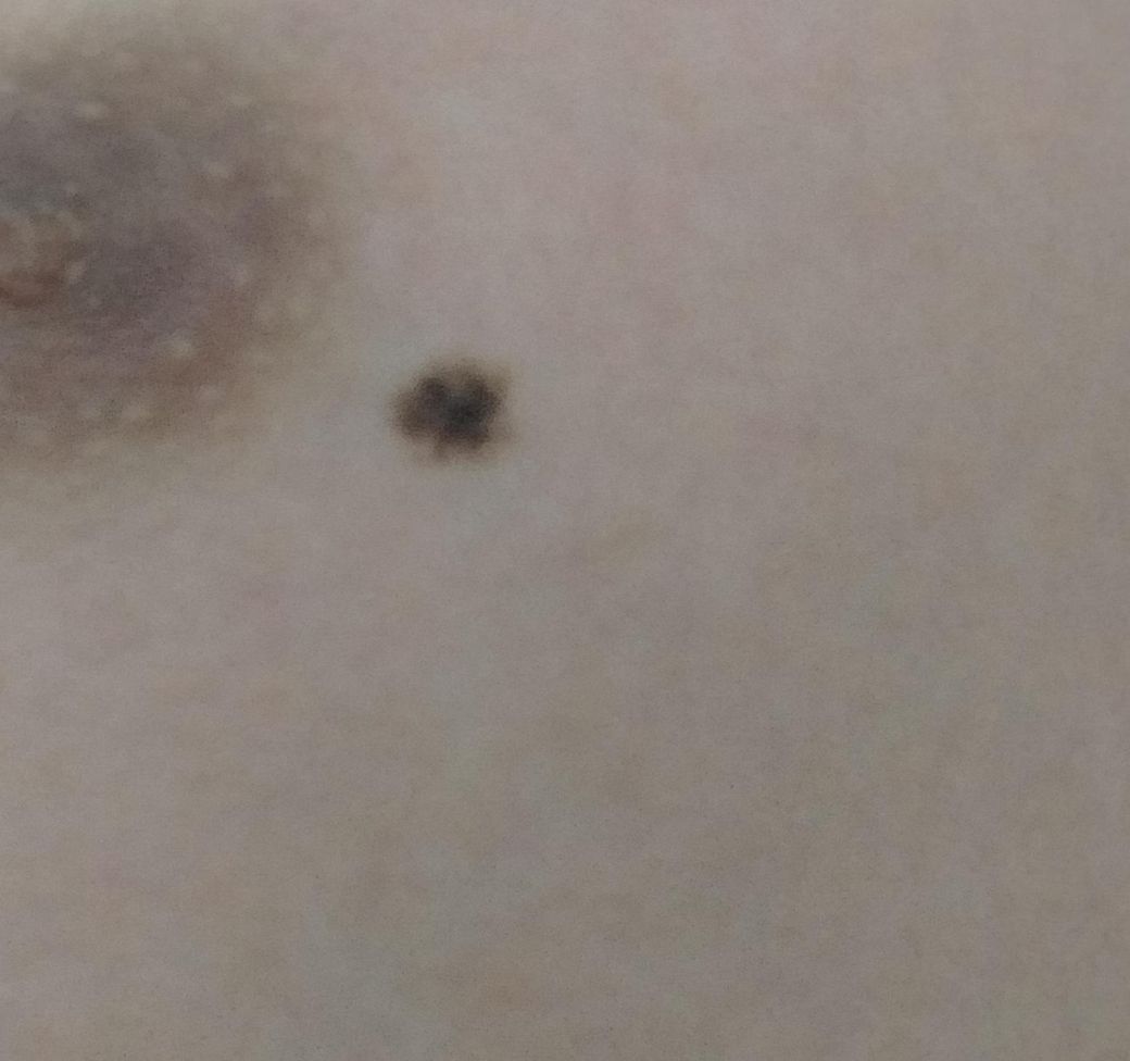 안녕하세요 어릴때부터 젖꼭지 옆에 점이 있었는데 평소에는 신경 쓰지 않고 있다가 어느날 흑색종에 관련된 정보를 얻게 되고 나서 다시 제 점을 확인해보니 지름이 0.7cm 정도 되고 다른 점들과 달리 여러 색이 섞여 있다는 것을 확인했습니다(그 외 다른 의심 증상은 없었습니다). 그로인해 정말 제 점이 흑색종으로 의심이가는 점인지 전문가분들의 소견을 들어보고 싶습니다.