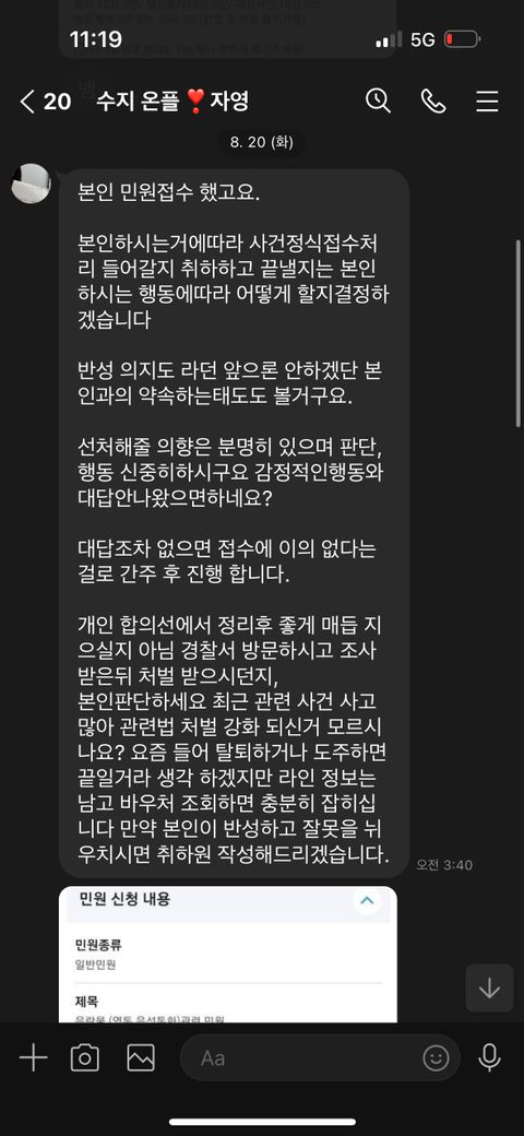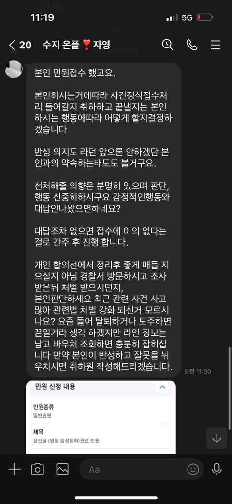 제가 처음에 트위터보고 라인 링크를 따라들어가서 인사를했는데 그다음날 똑같은내용으로 민원접수한다고 협박하네요 그리고 합의금은 300달라고하네요 제가구글링을 해봤는데 이런거 당한사람이많더라구요 그래서부탁드립니다그리고저는 18세입니다생일도 지났습니다 마지막 사진은 오늘 또 온거에요 부탁드립니다