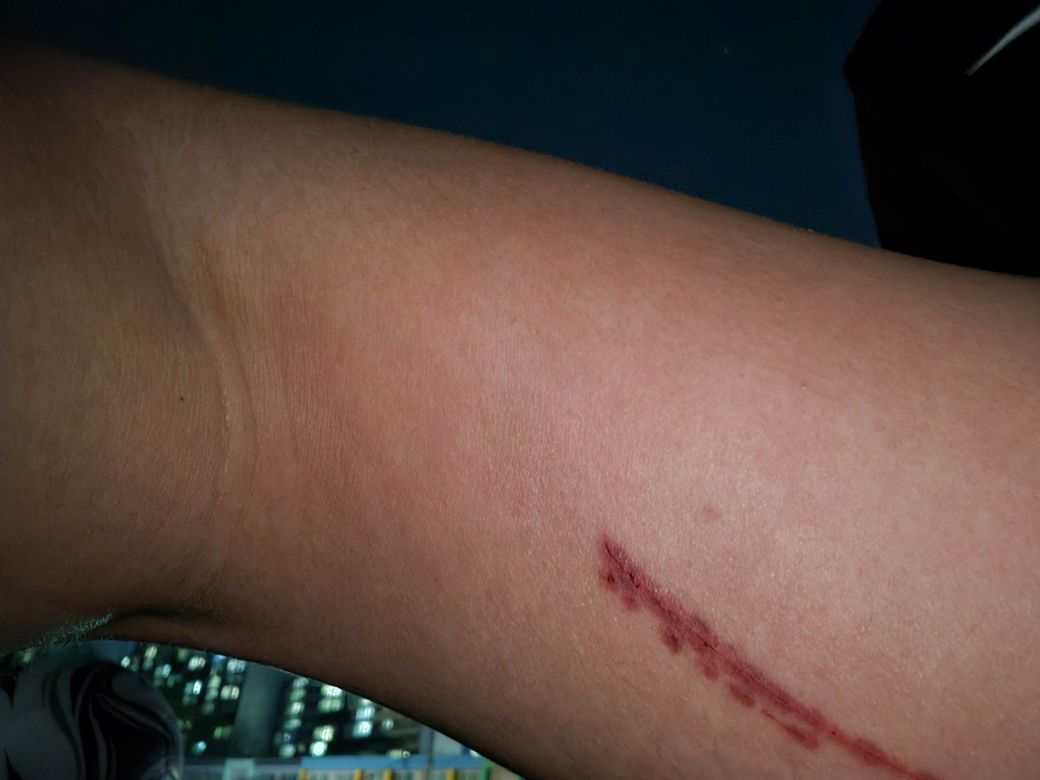 풋살장 펜스 지지대 쇠같은것에 긁혔습니다.