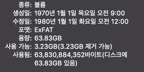 완전 다 비운상태인데 왜 64GB가 모두 사용중으로 뜨고 날짜도 완전 이상구요.