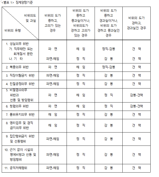 운영규정에 신설된 징계 양정기준은 다음과 같습니다