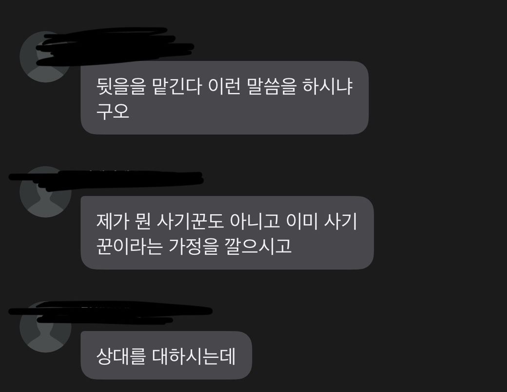 이틀 째 보내지 않고, 계속 재촉하니 자기가 사기꾼인 줄 아냐며 역으로 맞대응합니다.