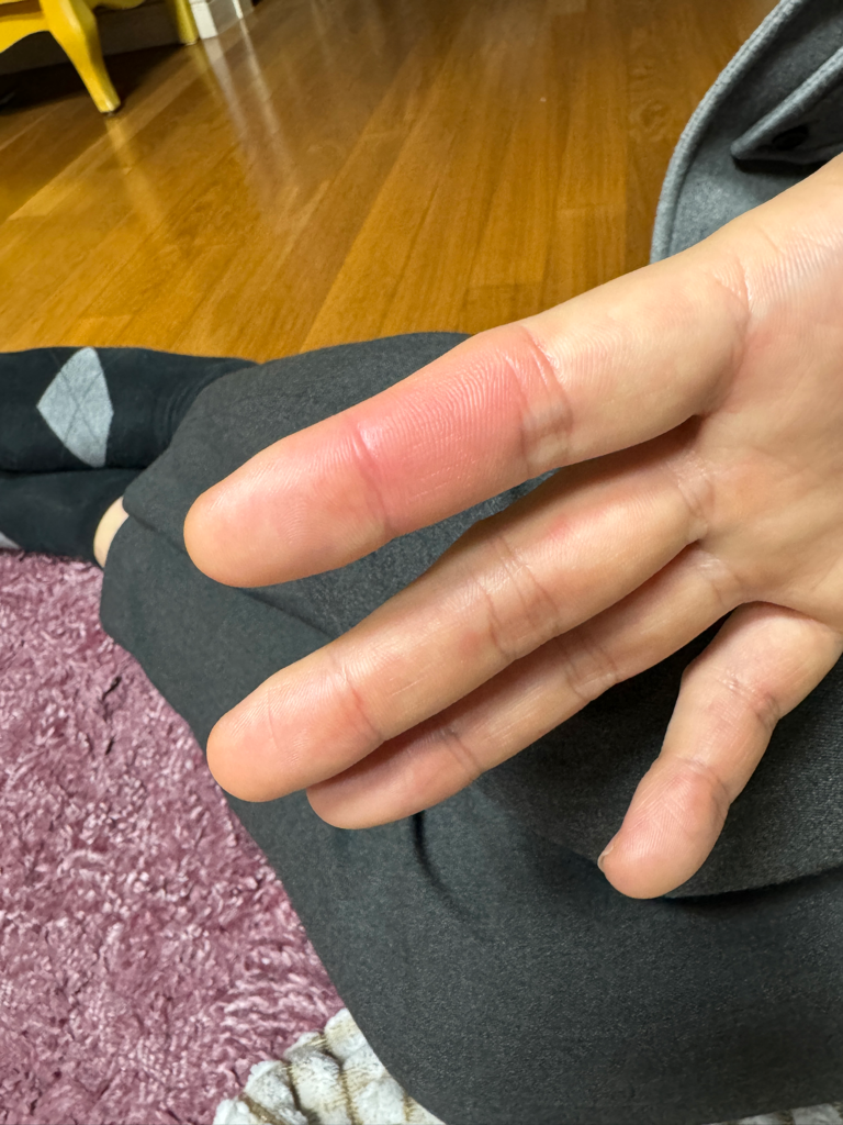 손가락에 염증이 생겼네요. 약을 먹고 생겼다면 부작용일수 있습니다. 약을 중단하고 병원에 가보시길바랍니다.