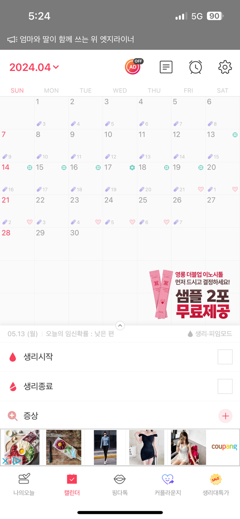 5월인 현재 경구피임약 5팩째 복용중이고 사진은 4팩째인 4월 기록 달력입니다. 중간에 하루 복용을 잊긴했지만 다음날 아침 바로 복용하였고 그 이후 2주뒤에 (25,26일) 콘돔없이 관계가 있었습니다. 4팩째 복용때 복용시간이 들쑥날쑥하였는데 모두 밤 6시에서 12시 사이에 복용하긴 했습니다. 이후 5월 1일 생리혈과 같은 붉은 피가 다량 나왔고 2,3일까지 양이 많진않았지만 피가 나왔는데 이게 생리겠죠...? 그 이후 13일인 오늘 갑자기 갈색 냉이 조금 나오는데 혹시 착상혈이나 임신일지 불안합니다. 임신일까요..?( 5팩째인 이번에 피임약을 변경하긴했습니다