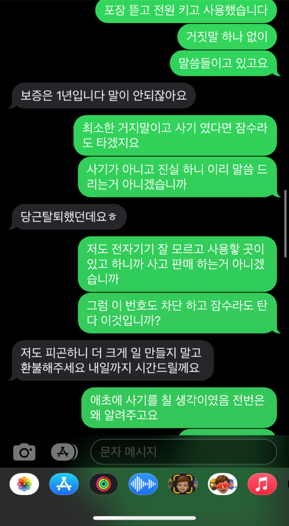 제 입장은 사진 그대로 입니다 협박에 두렵고 어이도 없고 꼭 해줘야 하는 걸까요 물건에 하자는 절대 없습니다 제가 사용 할때도 충전 잘 되었고 고장이 없었습니다