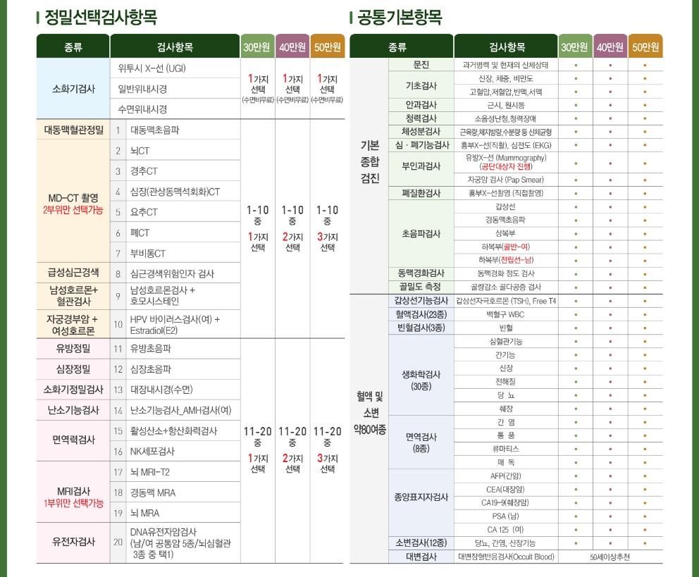 → 사진 기준으로는 혈액검사(기본/정밀 포함) 항목이면 충분합니다.
