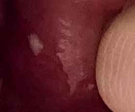 사진 명확히 확인은 안되나 증식성 병소 있는 것으로 보이며 과각화증이나 다른 백반증 의심가능하리라 보입니다. 지켜보시기보다는 구강내과나 구강악안면외과 내원하셔서 검진 받아보시기를 바랍니다.