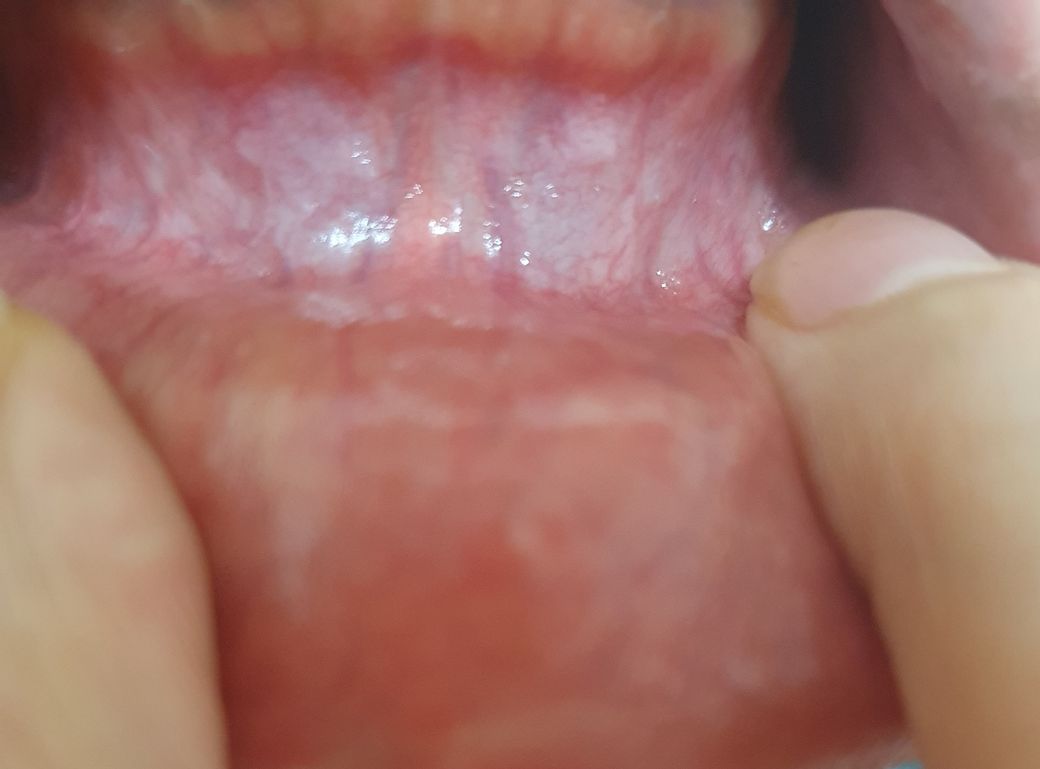 구강점막이 투명해진다? 당기면 투명해진부분이 조금 늘어나서 흐물거려보이는 형태가 자꾸 생깁니다