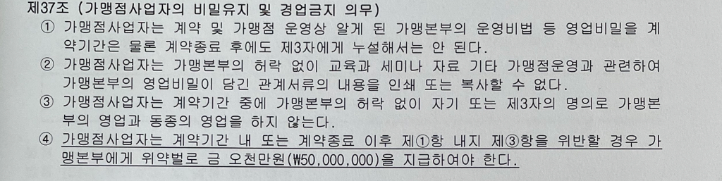 3항은 계약기간 중에만 적용되는 조항으로 보이며, 계약기간이 종료된 이상에는 동종영업이 금지되는 것은 아니라고 보여집니다.