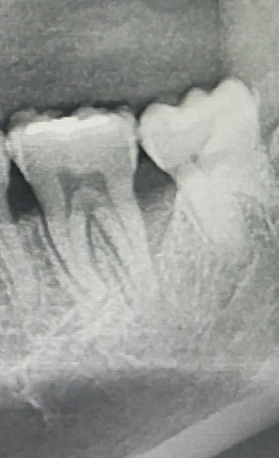 어금니 원심측 잇몸뼈가 염증으로 녹아있는 상태이고 잇몸치료는 받아봐야 합니다 현재로선 증상없으면 발치는 안해도 됩니다 치아 원인이 아닙니다