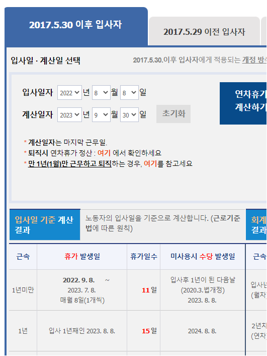 작년 22년 8월8일에 입사하여 2023년 9월30일까지 계약을 하였습니다.