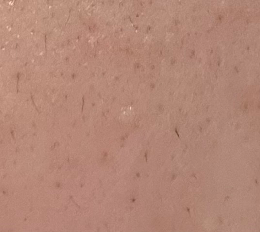 목과 얼굴에 난 흰색으로 된 얇고 작은