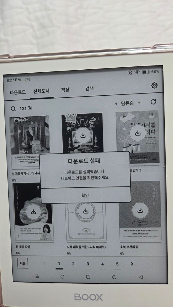 사진처럼 이북리더기에서 다운로드를 하려고 하면 네트워크 연결을 확인하라고 떠요...ㅜㅜ