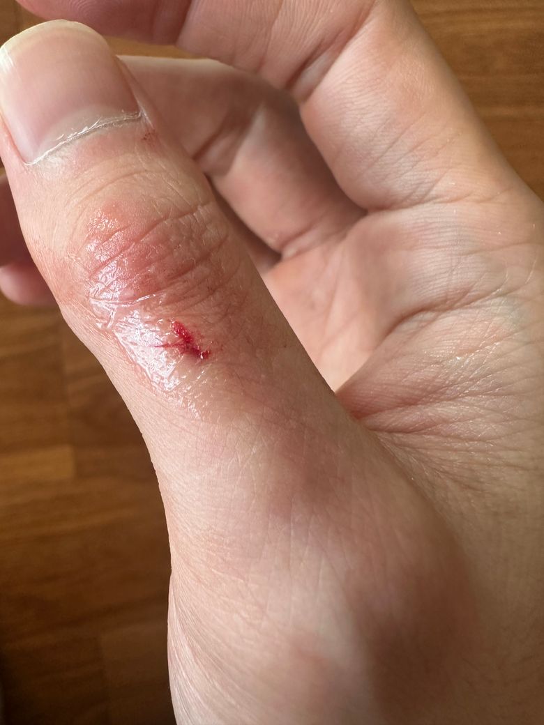 핀셋에 손가락이 박혔어요(1센치 정도)