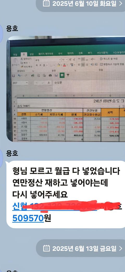 팀장이라는분이 50만9천5백7십원을