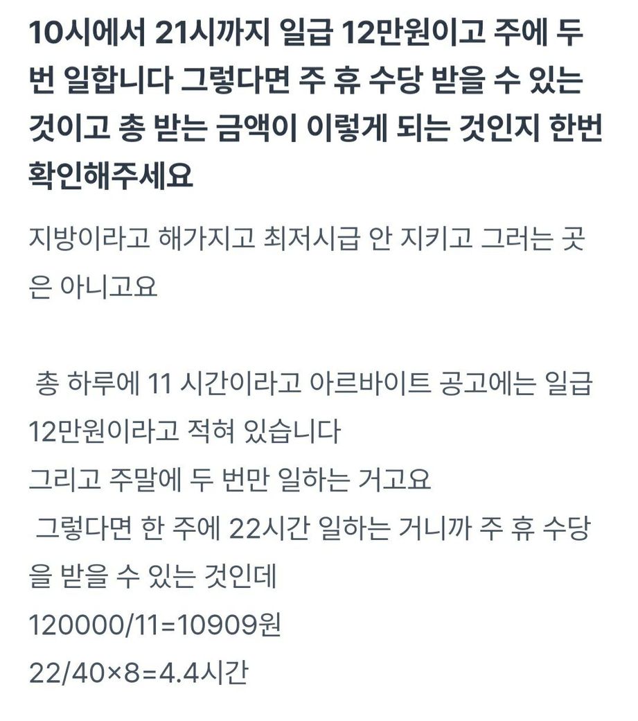 제가 시급보다 조금 받는 건 아니죠?? 제가 이해를 했는지 알려주세요