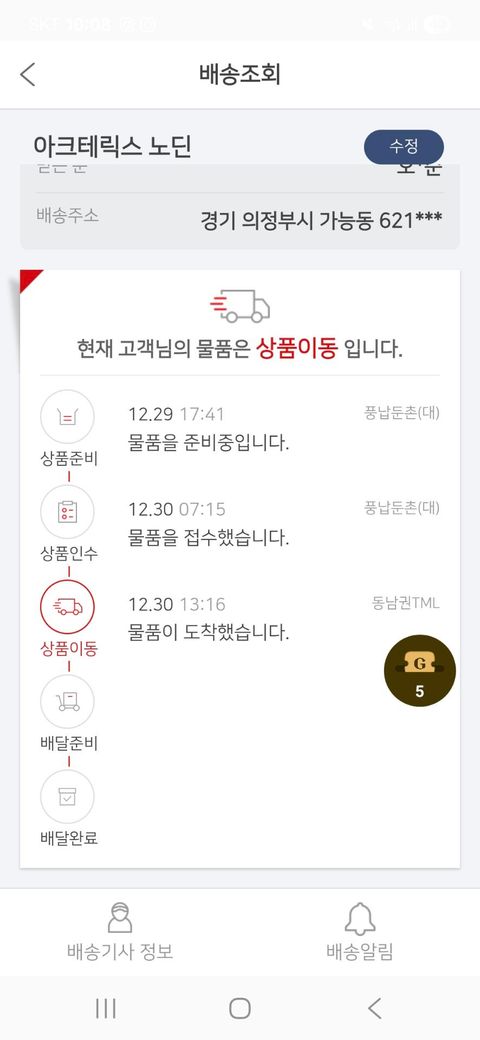 도착할것 같습니다 택배기사님이 어디에 잘못 싣지않는다면 내일 도착 해요 상품이