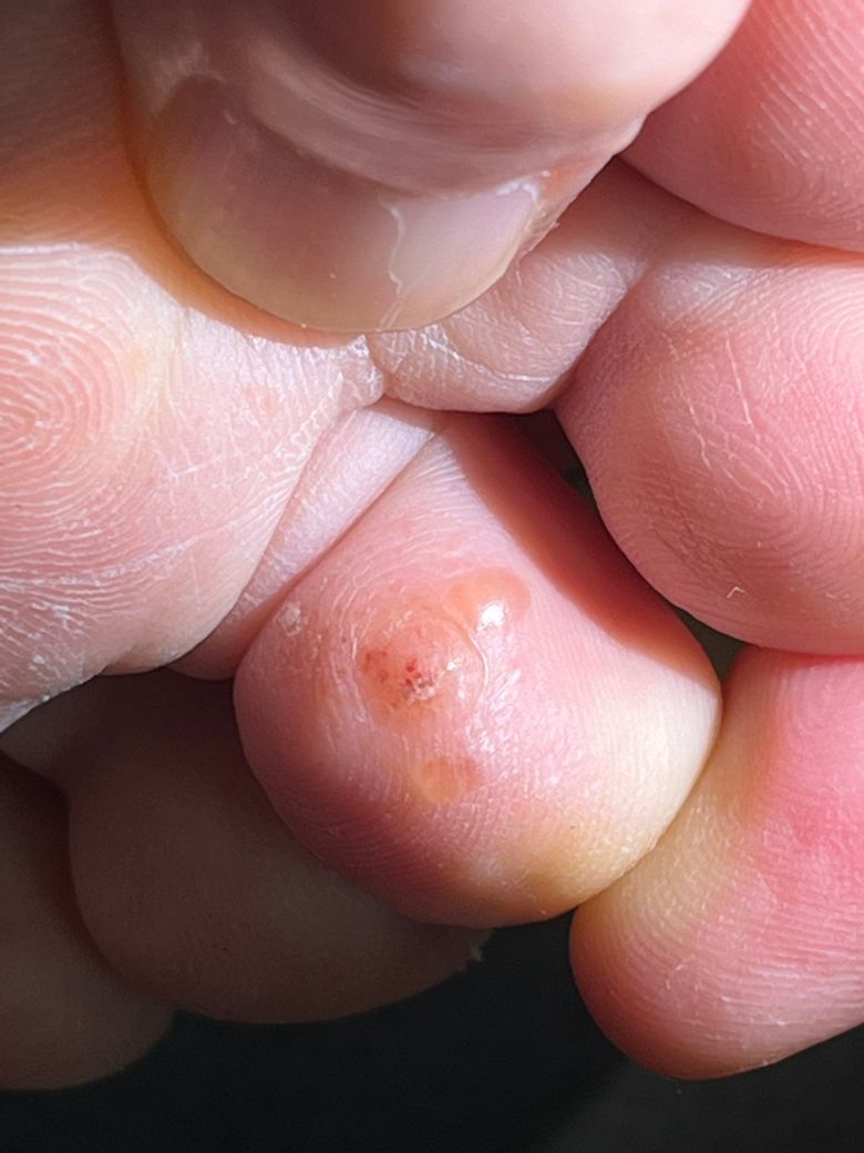 이거 혹시 사마귀인가요?? 지속적으로 물집이 잡혔다가 출혈이 잡혔다가 터지면 없어졌다가 다시 생기고가 반복된다네요……… 사마귀에요?
