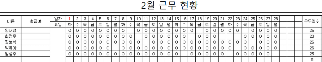 근무현황에 있는 이름중 질문자님이 누구인지도 적어주셔야 될 것 같습니다. 감사합니다.