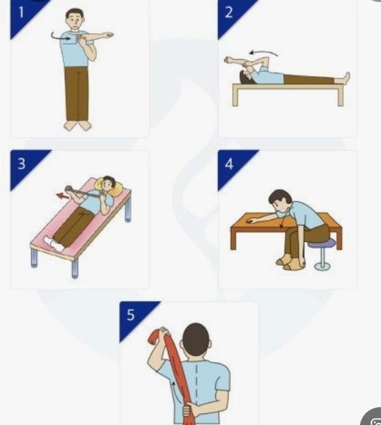 어깨관절 운동범위를 유지하기 위해 가벼운 스트레칭을 하거나 평소에 사용하지 않는 범위로 가볍게 움직여 주시는 것이 좋겠습니다.