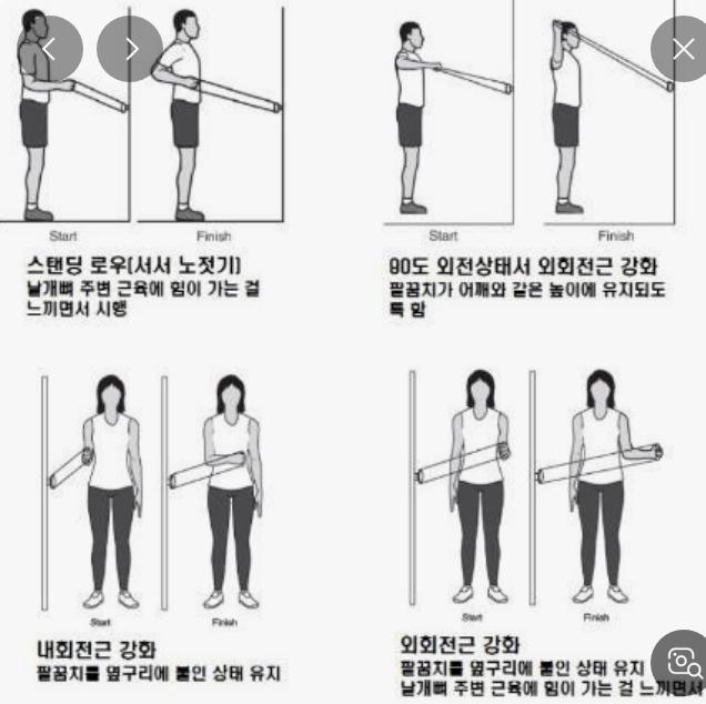 또 "견갑 안정화 운동(밴드 로우, 날개뼈 모으기)"으로 어깨 부담을 줄이는 게 중요합니다.