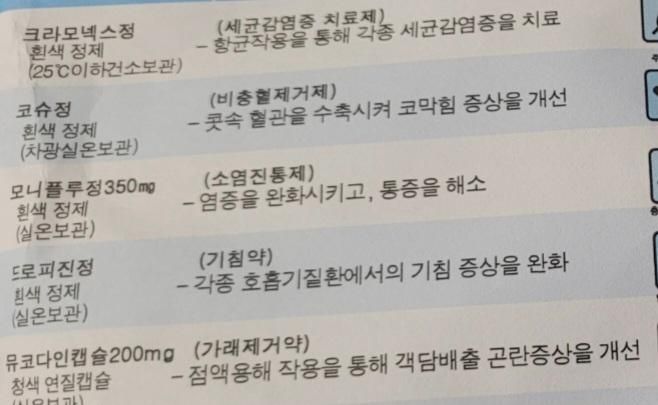 파란색봉투약이 기존에 먹던약인데 ㅜㅜ2틀치만 주셔서 일욜에 먹을게 없어요..3월초 받아놓은 빨간약봉투 내용 약을 먹어도될까요 증상은 인후염 콧물 기침입니다