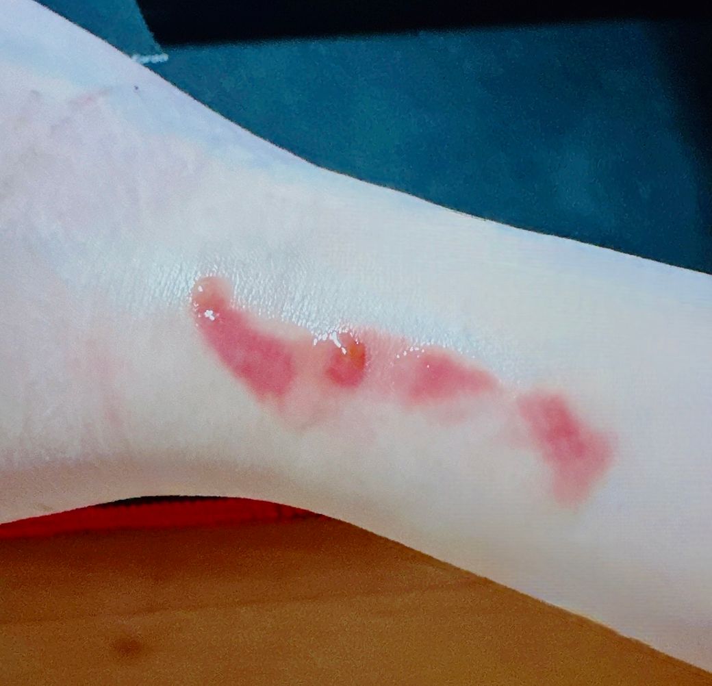 어제 몸이 좀 안 좋고 환부가 너무 가려워서 보니까 2 3 4번 사진처럼 수포라고 해야할지 뭔가 올라온 상태인데 이건 어떻게 해야 할까요… 계속 케어믹신 연고 바르면서 기다려도 될까요? 아니면 뭔가 붙여야 할까요?