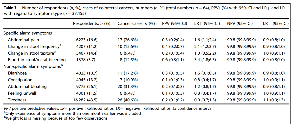 Predictive values of colorectal cancer alarm symptoms in the general population: a nationwide cohort study (British Journal of Cancer (2019) 120:595–600)