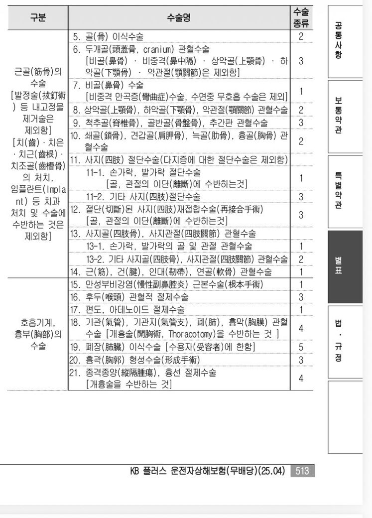 KB처럼 1종 수술비에 근·건·인대·연골까지 규정한 약관은 같은 수술도 1종으로 판단할수 있습니다.